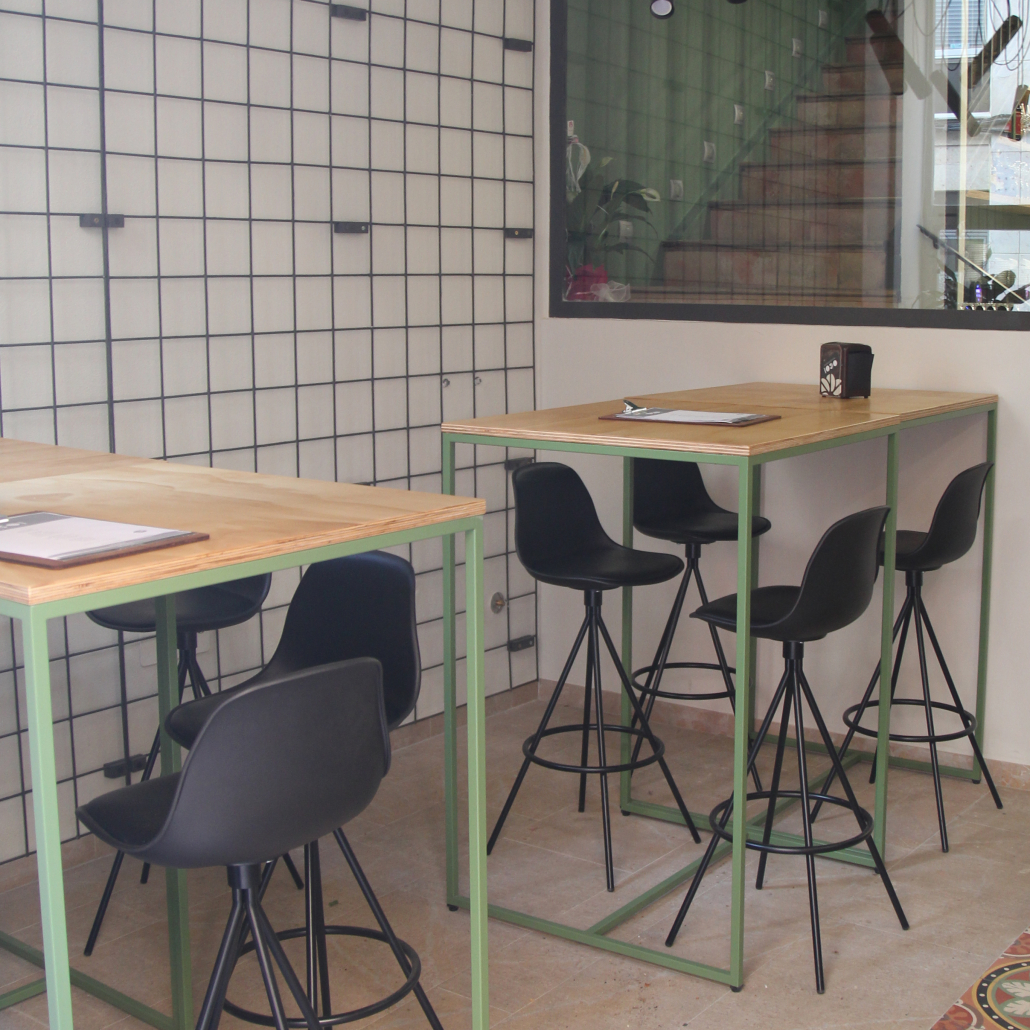 Fabricamos los productos con materiales de calidad como la chapa de madera con acabado de barniz al agua y el metal, tanto en acabado natural como pintado en epoxi al horno